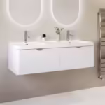 Give your bathroom an instant update, plus make the most of your bathroom floor space with this gorgeous vanity unit which includes twin basins. The curved ribbed unit in matt white features two wide drawers, each with a sleek curved lip handle, plus they have a soft-closing mechanism to prevent slamming and wear and tear.