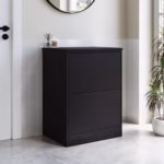 Enhance your bathroom with the Porto Vanity Drawer and Shelf. With a soft closing, push-to-open drawer and internal matching colourway, the Porto exudes quality. Customise your own storage space with the stand-alone shelf and hanging brackets allowing you to adjust the height of your open storage depending on whether you want to add baskets, tall bottles, or towels. This matt black unit comes with a rectangular, gloss white countertop basin. There is no tap hole, so you’re free to complement it with an equally stylish tall basin mixer or wall-mounted tap of your choice.