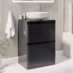 Get the look of a high-end boutique hotel with this stylish vanity basin unit. With a minimalist handless opening and matt grey finish, it’ll add elegance to any bathroom. The two drawers create much needed storage space for all your bathroom essentials and they are soft closing to help prevent slamming. A high-quality ceramic inset basin with 1 tap hole is included; a tap isn’t included, so you’re free to choose the tap of your choice. No assembly is required, just secure the basin, install your chosen tap and get to using it right away. There are various colourways and widths also available in the Roxbi range.