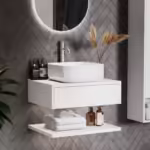 This vanity unit comes complete with the oval countertop basin featuring a gloss white finish. The unit comes without pre drilled holes, and a tap isn’t included, so your free to choose a tall or wall mounted basin tap of your choice. It features two drawers with integrated handles giving it that seamless look, each opens up to a huge amount of storage space for you to keep your toiletries, bathroom essentials and spare towels within. They’re even soft closing so they’ll shut smoothly and quietly, preventing any risk of finger trapping.