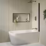 Make a statement in your bathroom with our stunning Amaro bath with hinged matt black shower bath screen. The left-handed curved shape fits snugly into a corner, while the single-ended design allows you to relax comfortably at one end. The reinforced acrylic is resistant to staining, chipping, and cracking, ensuring longevity. Adjustable feet ensure a level fit, and with no pre-drilled tap holes, you’re free to choose your perfect brassware to complete the look.