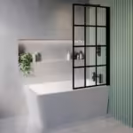 Create a focal point in your bathroom with our Nova Grid Bath Screen. The grid effect Matt Black detail brings adds an industrial, contemporary modern look to your bathroom. Fitting perfectly onto our straight baths. This bath screen is hinged, allowing for easy access to the bath in smaller spaces, and ease of cleaning. Complete water deflector at the base of the screen to allow shower water to run back into the bath. Aluminium grid frame on the outside for maximum effect, with silk printed inside for easy cleaning.