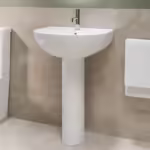 This stylish Ashford bathroom sink is the perfect piece for any modern bathroom. It features a large basin with matching smooth full pedestal. The basin has one tap hole; the tap isn’t included, so you’re free to choose the mixer tap of your choice. Pair with the matching Ashford range of products to complete the perfect look.